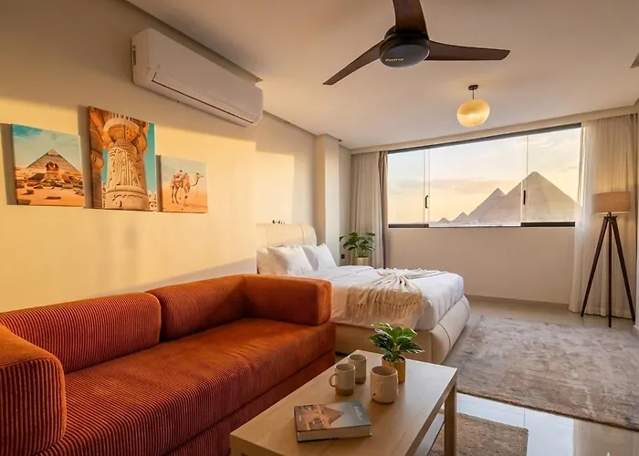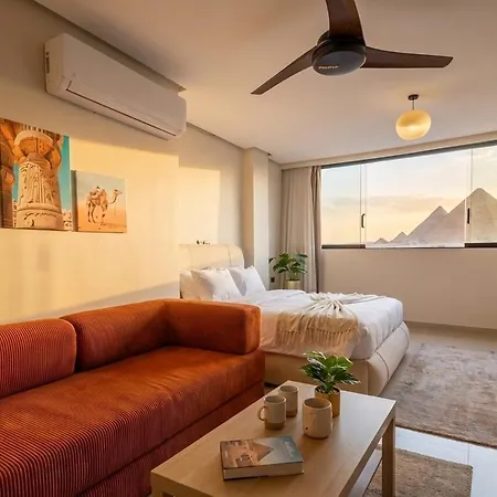 This apartment in Cairo is 2.1 km from Viewpoint and Camel rides and in proximity to Dahshur. The apartment is 10 minutes by car from Great Pyramid of Giza.